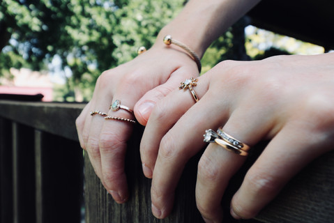 My earrings were, as they often are, from Rocksbox. You can find more information about Rocksbox on my previous posts or click the link! I loved the art deco floral style as they fit in well with my shooting location in downtown Salina! Find similar styles here and here. I have had this gold cuff bracelet for a long time, and can't remember where I got it. Here is a similar bracelet from J.Crew! Last, but not least, my rings are from a ring set from H&M.