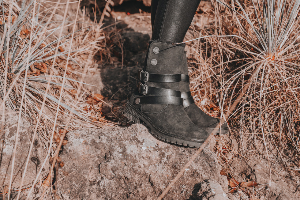 This could possibly be one of the coziest holiday outfits of the series! This look is so great for a chilly, winter day when you still want to look a little put together but without sacrificing comfort. My inspiration for this look were my super cute boots from Blowfish Malibu! They are so unique, cool, and super comfortable! I definitely love the faux fur lined inside and the great tread on the bottoms (which is more rare than you think for women's boots) that will make them perfect for any winter weather. To add a pop of color to an otherwise all black look, I wore this pretty striped sweater from Velvet Heart. I also wore my favorite pair of faux leather leggings from Spanx and finished off the look with a black backpack, burgundy scarf, and lipstick!