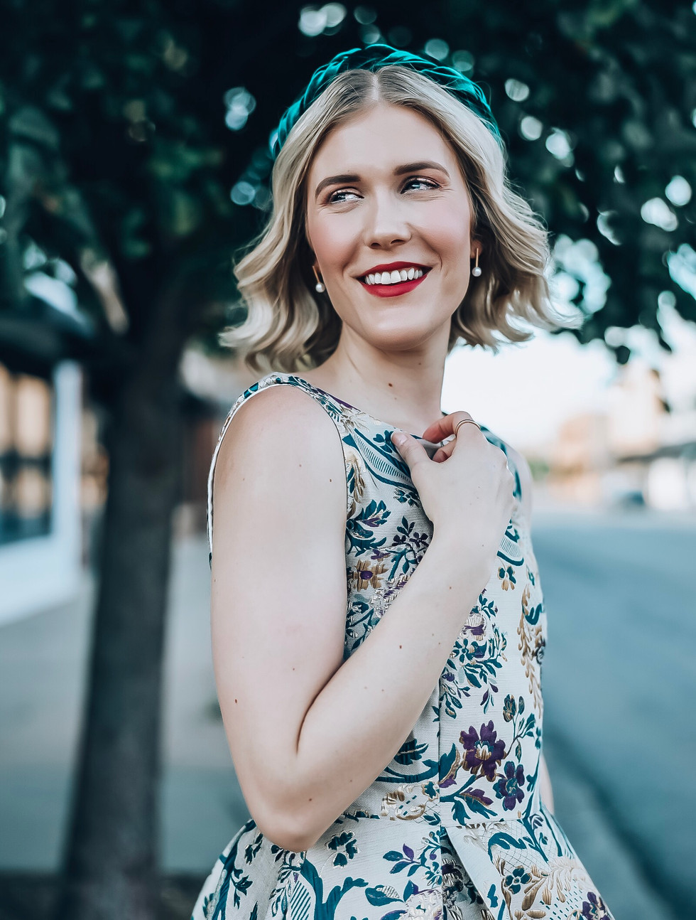 I finished off the look with one of my favorite hair accessories from Etsy. I absolutely love this emerald green, padded headband. It is so luxe and matches the dress and shoes perfectly. I also have this headband in burgundy and black!