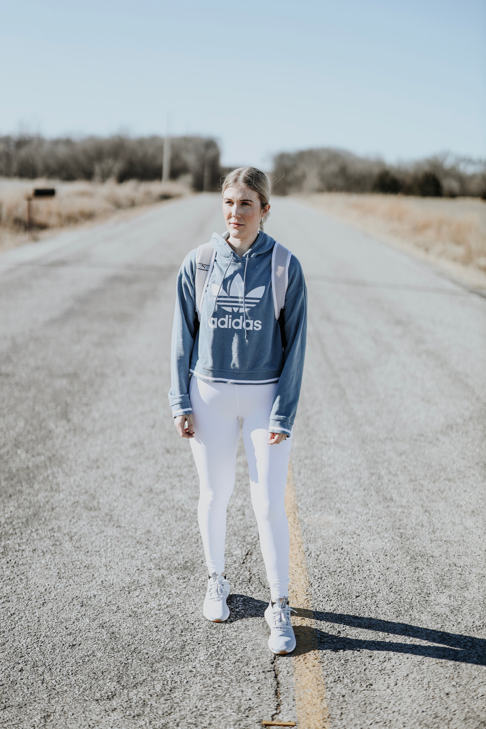 Crop hoodies are always great! They are super cute and look really good with high waisted leggings. Plus, their shorter length can help elongate the legs! Lord knows I need all the help I can get... It has taken a while for me to become more comfortable with them, but they are growing on me! This hoodie from Adidas was perfect for the look and fits very well! I wore a great sports bra from Old Navy underneath.